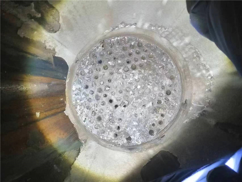 2022年8月12日河南都市機械設備有限公司馮經(jīng)理坐鎮(zhèn)指揮,技術(shù)員喬俊陽、都紅植積極配合,與新疆哈密市,新疆湖晟新材料科技有限公司張總,針對兩臺熱水缶,(廢水處理蒸發(fā)器)多年沒有解決了的結(jié)垢堅硬堵死的管子內(nèi)徑38毫米長度6米難題,使用特別加長的加粗軟軸,進行一步到位的疏通清理,過去奔著報廢處理的設備又重新煥發(fā)生機,即節(jié)約資金損耗又減少了工作時間,大大的為企業(yè)提高了效益,深受化工廠化肥廠鋼廠電廠制氧廠水泥廠糠醛廠青睞和歡迎!