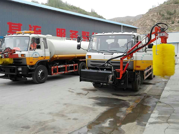 4、調(diào)整升降缸,伸縮臂缸,然后使刷滾擺動(dòng)更左端,使清洗位置恰當(dāng),開(kāi)始進(jìn)行工作。